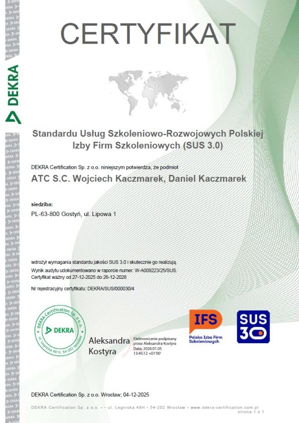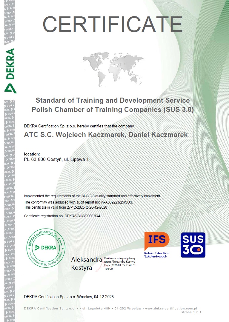Uzyskane przez nas zezwolenia, certyfikaty, potwierdzenia zarządzania jakością szkoleń do prowadzenia profesjonalnych kursów.